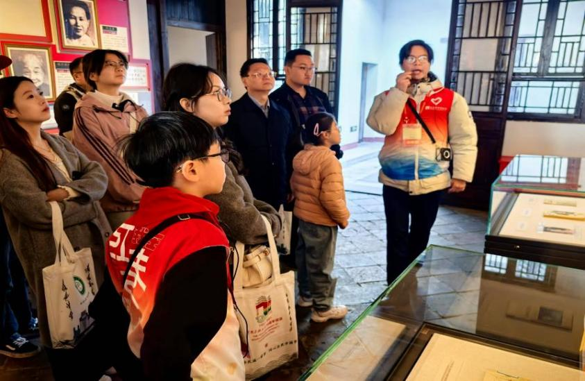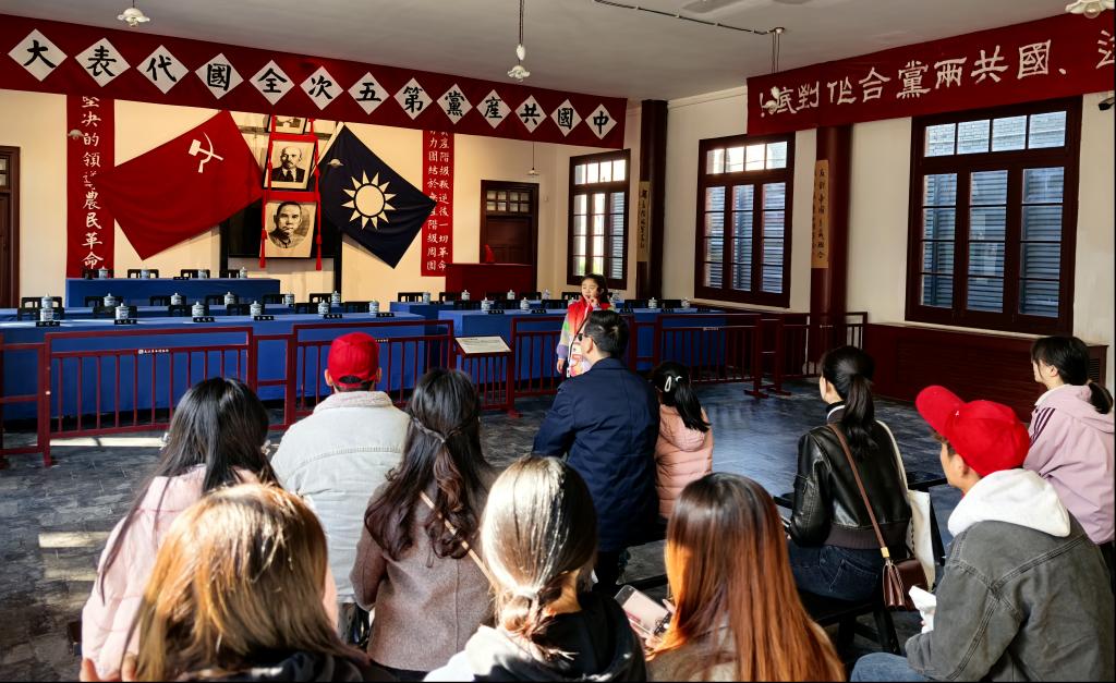 隨后,師生一行踏入中國共產黨第五次全國代表大會會址紀念館。步入展廳,靜靜陳列的文物仿佛在訴說往昔的崢嶸歲月,掛滿墻壁的照片如同一扇扇窗,打開通往歷史深處的大門,復原的場景更讓人身臨其境。緊接著,我們參觀了毛澤東舊居。這里是毛澤東同志于1927年主持農講所工作并在武漢從事革命活動時的辦公地兼居所,承載著厚重的紅色記憶。大家邊走邊聽、邊問邊記,回顧了偉人的革命事跡,真切感受到老一輩共產黨人的家國情懷。