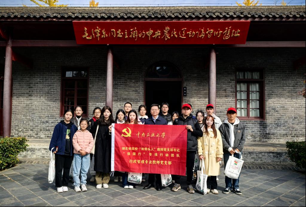 為學習貫徹黨的二十屆三中全會精神,鑄牢中華民族共同體意識,2024年11月30日上午,行管專業(yè)師生黨支部聯(lián)合開展赴武漢革命博物館研學實踐活動。本次活動由湖北省“雙帶頭人”黨支部書記“強國行”專項行動團隊負責人,行政管理系黨支部書記方堃、副書記毛斌菁老師帶隊,部分學生黨員及“1+1+1+1”頭雁計劃中結對幫扶的邊疆少數(shù)民族學生參加。