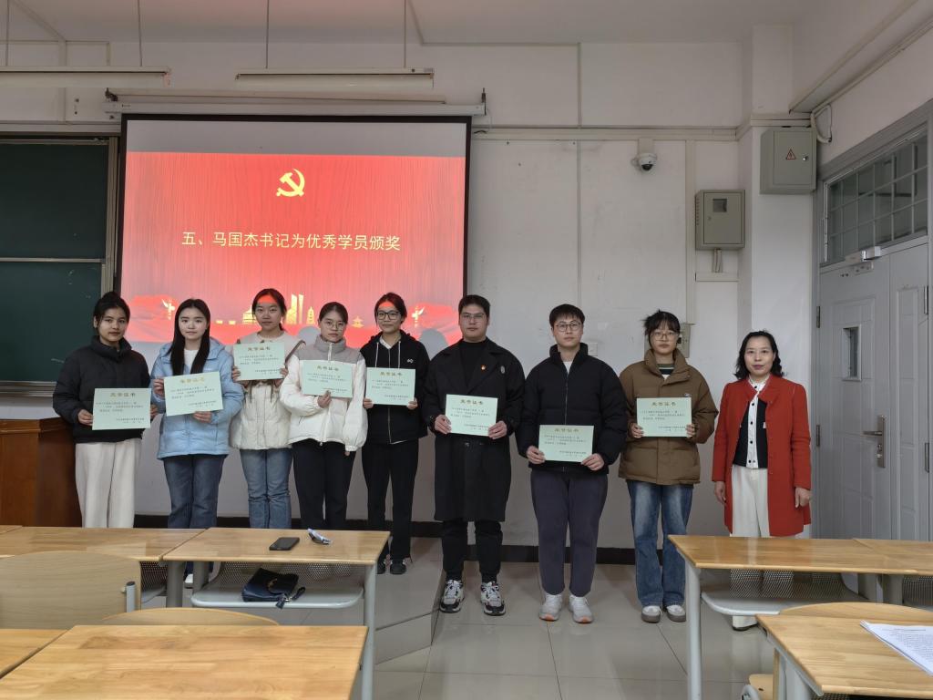 在莊嚴肅穆的中華人民共和國國歌中,黨校的結(jié)業(yè)儀式拉開帷幕。班主任李文志老師對本期黨校進行了總結(jié),并宣讀本期黨校培訓班優(yōu)秀學員名單。熊健淋、劉巳爍同學作為優(yōu)秀學員代表交流發(fā)言,他們分別匯報了此次黨校培訓的學習心得,表示本次培訓班形式多樣、理論扎實、內(nèi)容豐富,全體學員都進一步加深了對黨章黨規(guī)黨紀、黨的二十大、二十屆二中、三中全會精神和鑄牢中華民族共同體意識的理解和認識。下一步,同學們將堅定理想信念,以昂揚的精神風貌和腳踏實地的行動擔當作為,為強國復興偉業(yè)貢獻青春力量。馬國杰書記為優(yōu)秀學員頒獎并合影留念。