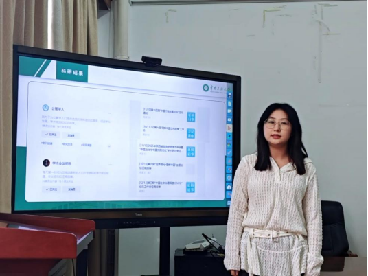 行政管理專業的陸星雨同學從學術研究成果、學科競賽成績、創新發明成績三個方面介紹了個人獲獎優勢。她分析各項指標在國獎評定中的占比,強調科研成果的重要性,她認為學習結構方程模型、扎根理論等研究方法是書寫論文的關鍵,并建議同學們通過“公管學人”等公眾號平臺獲取會議征文信息。
