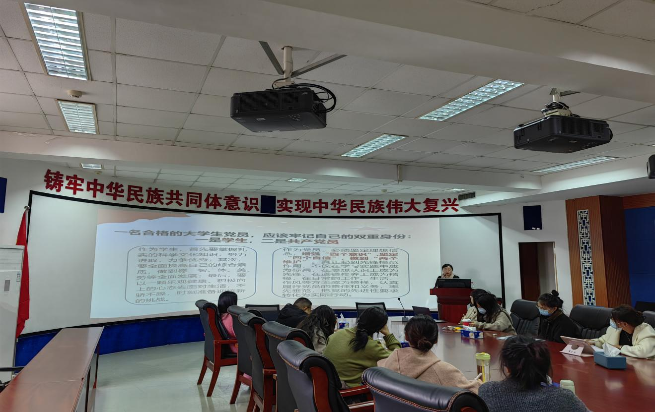 2023年11月12日上午,我院在北書院413會議室舉行2023年秋季黨校培訓班第二次集體授課,特邀我校人事處江瑩處長為同學們授課。本次授課由院黨總支書記賀展主持,院入黨積極分子、預備黨員共20名同學參加。
