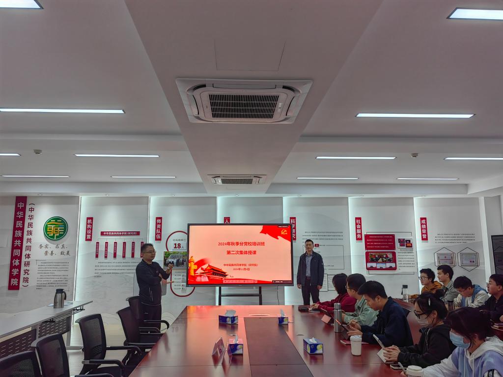 11月8日,我院特邀學校黨委組織部常務副部長、黨校副校長周剛進行2024年秋季黨校培訓班第二次集體授課,本次授課在北書院508會議室舉行,院黨總支書記賀展主持,院入黨積極分子、發展對象和預備黨員共30余名同學參加。