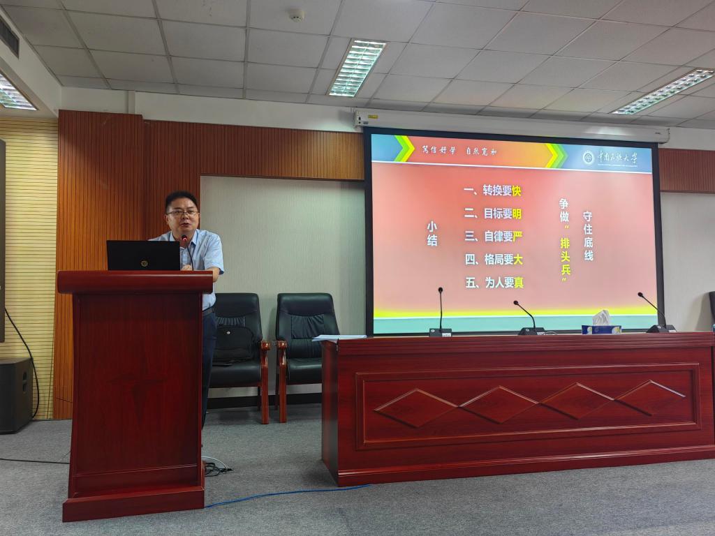 湛諶從校園電信詐騙、校園日常安全及知法懂法堅決抵制宗教向校園滲透三個方面進行安全教育,提醒同學們在關鍵時間節點一定要提高警惕,做好各類風險防范。