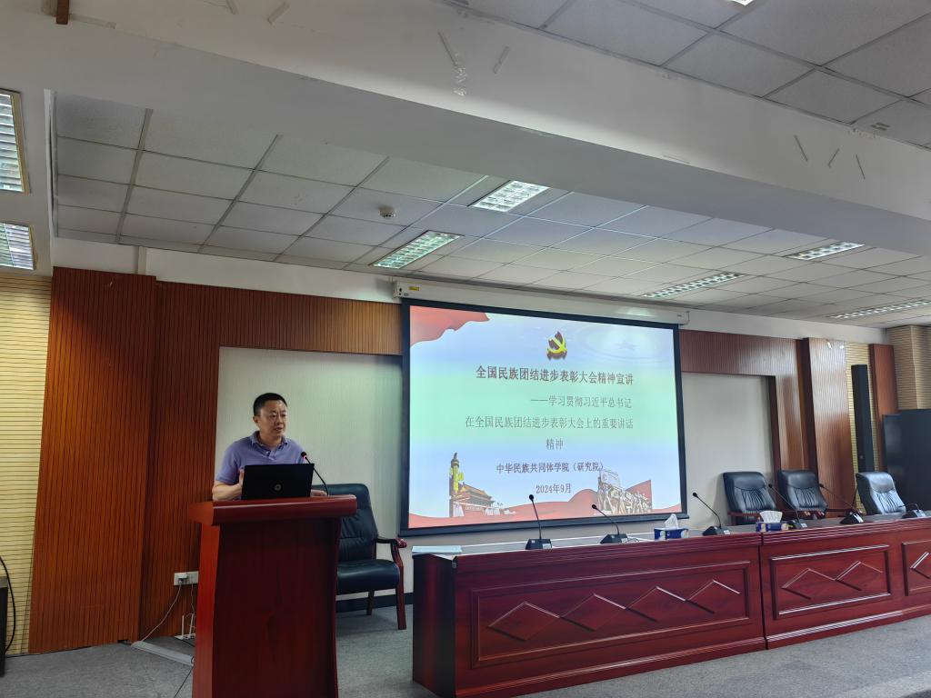 院長李從浩教授向同學們介紹了本次全國民族團結進步表彰大會的基本情況以及學院面臨的新形勢和新挑戰,同時提出三點建議:一是不僅要打好理論基礎,還要進行深入研究;二是每位同學要把自己當成學院的一份子,用好學院資源;三是要守好意識形態、言行底線。