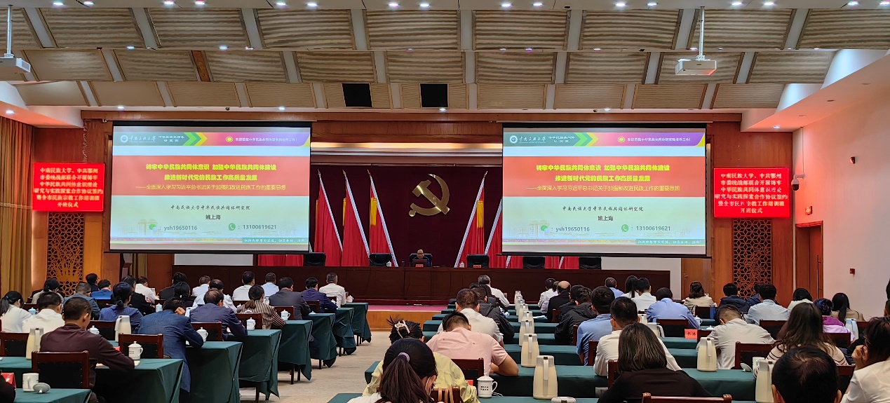 簽約儀式現場,學院姚上海教授就“鑄牢中華民族共同體意識 加強中華民族共同體建設,推進新時代民族工作高質量發展”進行專題宣講,從鑄牢中華民族共同體意識重要論斷提出的時代背景、理論內涵以及如何推進鑄牢工作三個方面進行了詳細闡述。