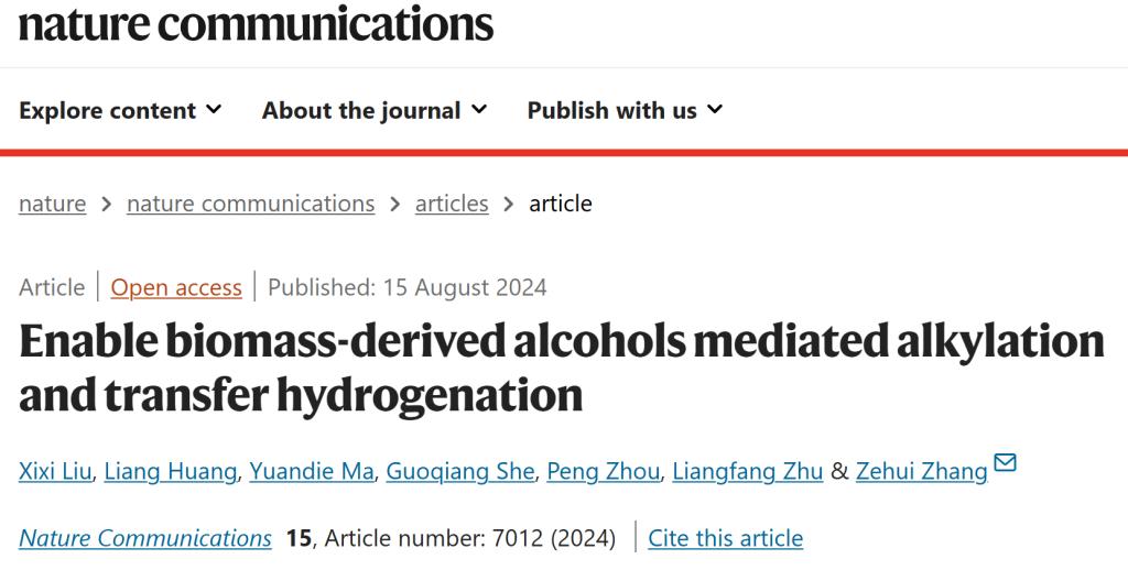 近日,我院張澤會教授課題組在路易斯酸位點催化醇氫轉移及烷基化C-N/C-C鍵偶聯取得重要進展。該成果研究論文Enable biomass-derived alcohols mediated alkylation and transfer hydrogenation 在國際頂級期刊Nature Communications上發表(文章鏈接:https://doi.org/10.1038/s41467-024-51307-8),張澤會教授為論文的唯一通訊作者。