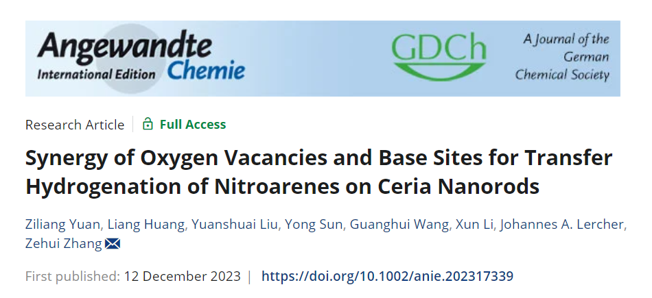 近日,化材學院張澤會教授課題組在生物質乙醇氫轉移選擇性還原硝基化合物方面取得重要研究進展。12月12日,該研究成果以“Synergy of Oxygen Vacancies and Base Sites for Transfer Hydrogenation of Nitroarenes on Ceria Nanorods”為題在化學類國際頂級期刊Angewandte Chemie International Edition上發表(原文鏈接:https://doi.org/10.1002/anie.202317339)。