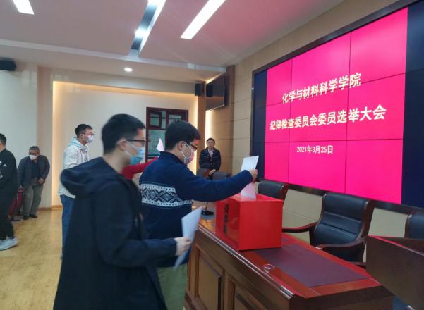 莊嚴的《國歌》聲中,選舉大會正式開幕。會議宣讀了學校黨委關于做好基層紀委選舉的相關文件及批復,提請審議通過《中共中南民族大學化學與材料科學學院紀律檢查委員會委員選舉辦法》,按照選舉規(guī)定和程序,大會以無記名投票差額選舉的方式,選舉產生張青、周忠強、楊夢瑩3名同志為學院紀委委員。