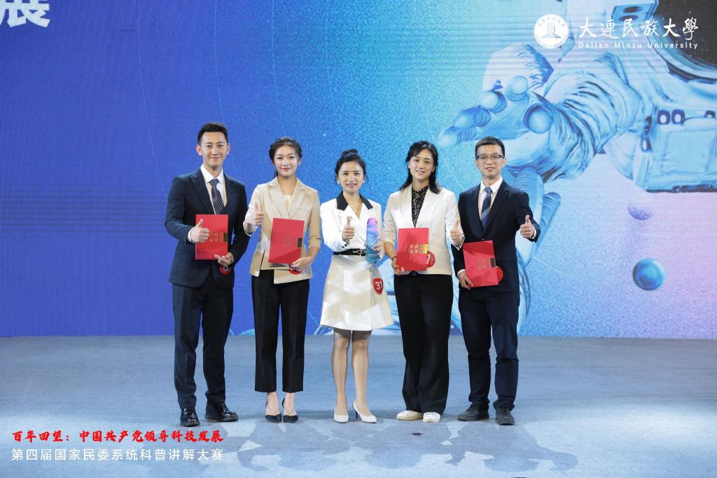 2021年5月12日,由國家民族事務委員會、大連民族大學聯合主辦的國家民委第四屆科普講解大賽在大連落下帷幕。本次大賽以“百年回望:中國共產黨領導科技發展”為主題,采取自主命題講解、隨機命題講解、科技常識問答和評委問答四個方式進行。比賽十分激烈,現場精彩紛呈。來自國家民委系統7個代表隊,共32名選手參加了本次比賽。經過激烈角逐,最終我院黎永秀老師、姜宇老師分別喜獲大賽一、二等獎。