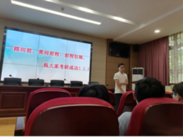 緊接著,黃濤老師就當前考研形勢進行了分析,并就考研準備、目標選擇及未來發展等給同學們提出了良好的建議。此外,方懷防老師根據自身求學情況提出,可以把出國深造納入考慮范圍;池泉老師根據考研政策的變化建議同學們可以優先考慮報考專碩;侯雙雙老師和嚴新穩老師從自己及家人的求學經驗告知同學們考研的重要性,希望同學們盡自己努力去嘗試,不讓自己后悔,并根據自身及學長學姐的例子給同學們提出了合理化的建議。