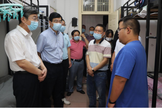 在學生寢室,校領導了解了同學們的住宿環境和生活情況,充分肯定了同學們對防疫工作的支持,希望同學們繼續遵守防疫規定,積極培育互幫互助的寢室文化,共同維護安全穩定的校園環境;詳細詢問了同學們的學習或就業情況,希望同學們打牢專業基礎、多去自習室、多進實驗室,勉勵同學們樹立正確的就業觀,有意向考研的同學合理設定目標,積極備考,爭取早日“上岸”。他們還希望同學們多參加體育鍛煉,強身健體,永葆青春朝氣。