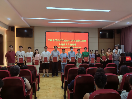 院長張道洪宣讀了《中共中南民族大學化學與材料科學學院委員會關于表彰優秀共產黨員、優秀黨務工作者和先進基層黨支部的決定》。經化材學院黨委研究決定,授予楊昌軍等20名同志“優秀共產黨員”榮譽稱號,授予包玲等6名同志“優秀黨務工作者”榮譽稱號,授予教工應化黨支部、研究生化工黨支部“先進基層黨支部”榮譽稱號。院黨委書記鄧行、院黨委副書記院長張道洪、副院長王立為受表彰的先進個人和集體頒發榮譽證書。