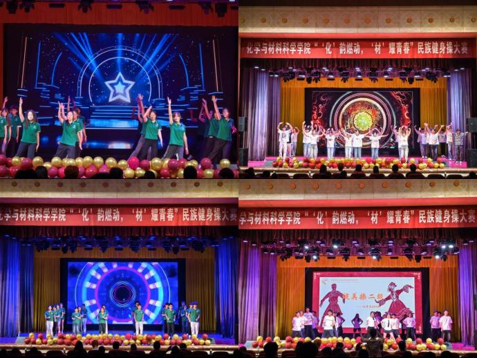 比賽現(xiàn)場,各參賽隊伍精神抖擻、配合默契,將民族舞蹈的韻律與健美操的活力完美融合,用充滿創(chuàng)意的編排設計和整齊劃一的動作表現(xiàn),贏得現(xiàn)場觀眾陣陣掌聲。經過激烈角逐,化學類2403班憑借出色表現(xiàn)榮獲一等獎,化學類2401班、高分子實驗班2301班+材化2301班獲得二等獎,化學類2402班、材料類2403班、材化2302班獲得三等獎,材料類2406班、材料類2401班、材料類2402班、化學類2404班獲得優(yōu)秀獎。