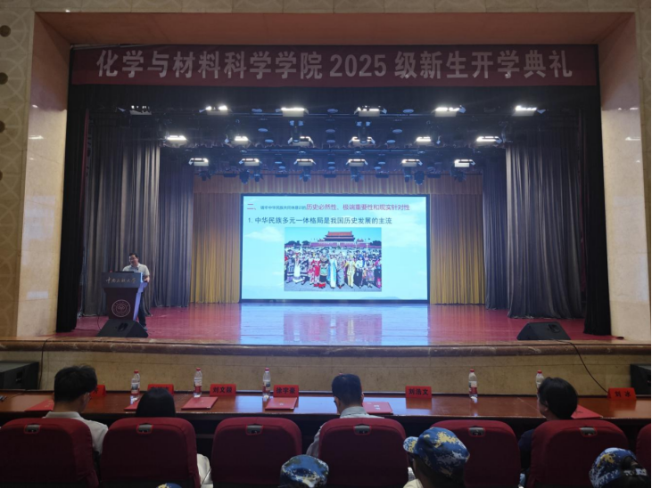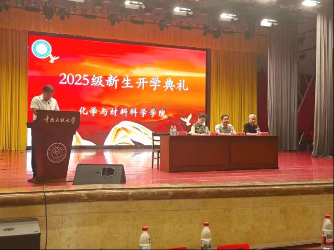 9月17日上午,化學(xué)與材料科學(xué)學(xué)院2025級(jí)本科生開學(xué)典禮于學(xué)術(shù)會(huì)堂隆重舉行。學(xué)院黨委書記祁帆,黨委副書記錢紅亮,紀(jì)委書記、副院長(zhǎng)金士威,副院長(zhǎng)李琳,各系主任、教師代表、輔導(dǎo)員、班導(dǎo)師、高年級(jí)學(xué)生代表及全體2025級(jí)本科新生共同參加本次典禮。典禮由錢紅亮主持。