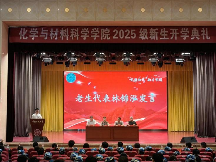 教師代表黃紹專教授指出化學(xué)與材料學(xué)科是揭示物質(zhì)變化規(guī)律的鑰匙和構(gòu)筑現(xiàn)代文明的基石,期望新生筑牢專業(yè)根基、勇于實(shí)踐探索、拓展學(xué)術(shù)視野、錘煉品格修養(yǎng),表示全體教師將竭盡所能為學(xué)生的成長(zhǎng)保駕護(hù)航。