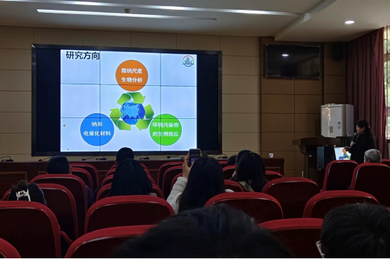 汪夏燕教授介紹了單分子細(xì)胞的功能、結(jié)構(gòu)、性質(zhì)以及單細(xì)胞分析的優(yōu)點(diǎn)及研究難點(diǎn)。為解決上述難題,圍繞超微體積(極低含量)樣品的準(zhǔn)確操控、分析和檢測,微流控系統(tǒng)構(gòu)建,超微體積樣品取樣,微納色譜分析,單細(xì)胞質(zhì)譜分析和新型微納分析儀器展開探究。對(duì)于單細(xì)胞分析,主要開展捕獲培養(yǎng)、操控、觀察、遞送取樣和分離檢測五個(gè)部分;展示了超薄可控溫坑陣芯片、自制活單細(xì)胞無菌工作站、單細(xì)胞固定針的可控設(shè)備同時(shí)三視野空間分辨顯微操作系統(tǒng)、完整活單細(xì)胞電發(fā)射質(zhì)譜等領(lǐng)域的最新科研成果;并圍繞微納尺度生物分析、納米電催化材料以及環(huán)境污染物的生物效應(yīng)進(jìn)行歸納總結(jié)。報(bào)告結(jié)束后,汪夏燕教授與在座師生就固定針如何對(duì)細(xì)胞實(shí)現(xiàn)固定以及課題組環(huán)境檢測相關(guān)工作等方面進(jìn)行了討論和交流。