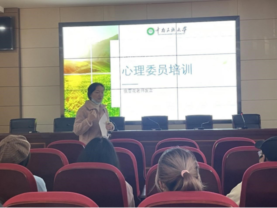 2022年11月10日,張雪花老師在化材樓一樓大會議室針對全院的心理委員開展培訓工作,老師首先講了心理委員工作的重要性,她表示擔任心理委員是非常重要的工作,心理委員是同學們心理安全、身心健康的守護者。張老師認為心理委員是老師和同學之間交流溝通的橋梁,要具有獲取關鍵信息的敏銳性,第一時間把危險的情況及時的報告給老師以及心理相關工作人員。