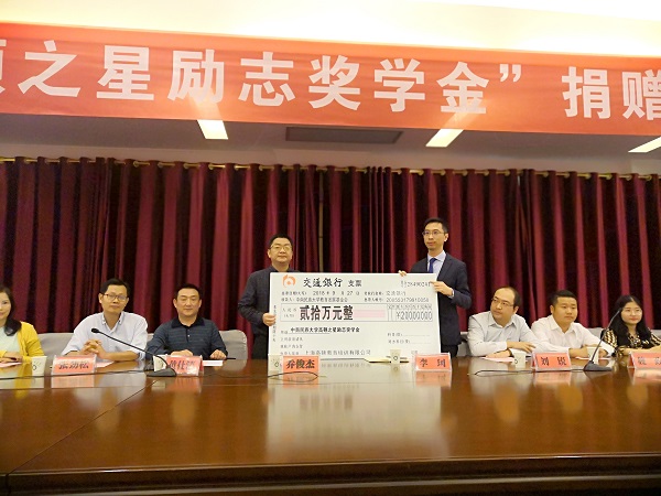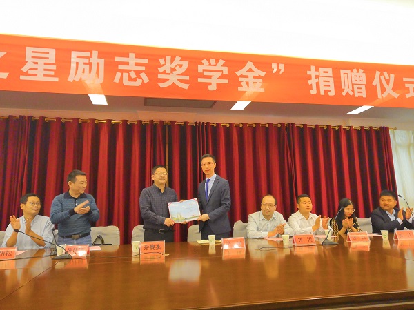 李珂代表上海高頓教育集團向我校捐贈了“高頓之星勵志獎學金”20萬元,喬俊杰代表學校回贈捐贈證書。