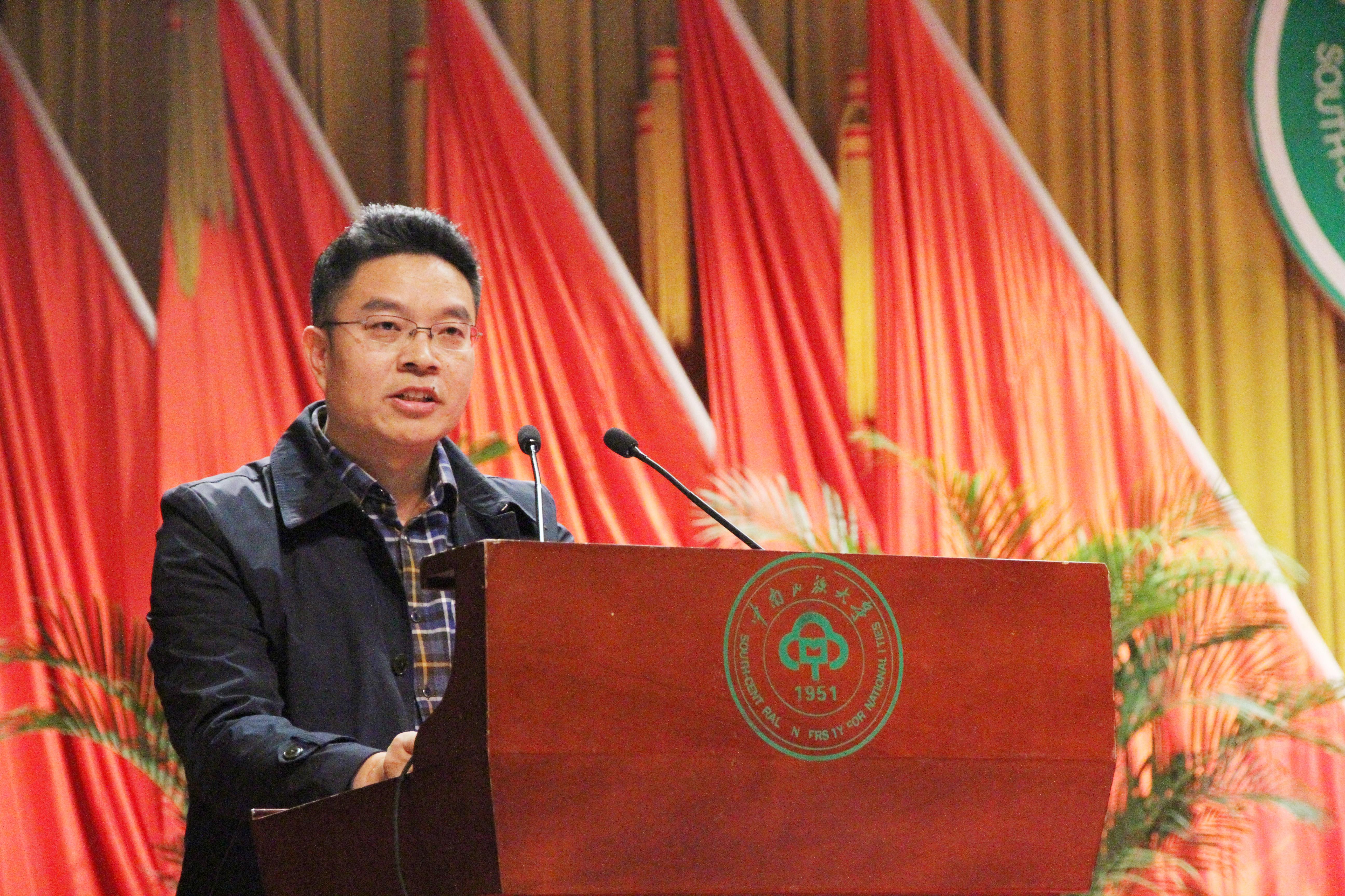 2016年12月29日下午,我校貴州籍、91級化學專業胡玉偉校友專程回到母校,為獲得中南民族大學首屆“夜郎獎學金”的青年學子頒獎。校領導李金林、白江源、段超、趙曉珊、楊勝才、李俊杰、喬俊杰、趙文等以及相關職能部門負責人出席頒獎典禮。