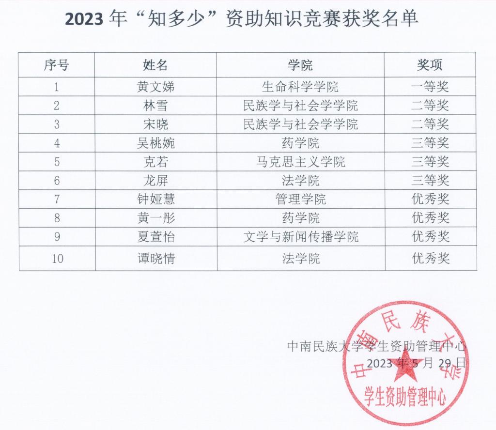 “知多少”資助知識競賽 :一等獎1名,二等獎3名,三等獎3名,優(yōu)秀獎3名;