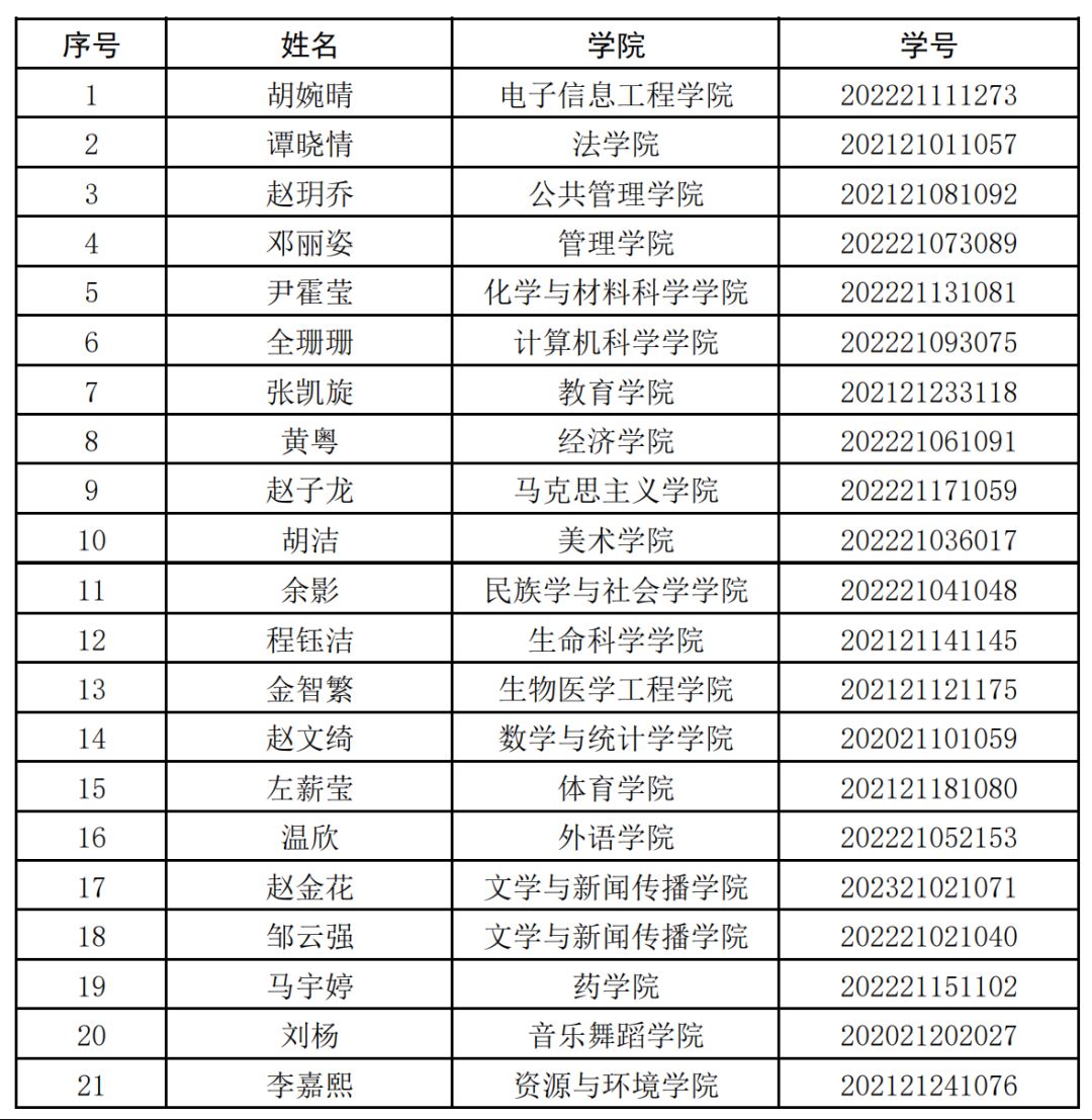 “勤工助學(xué)優(yōu)秀學(xué)生干部”名單