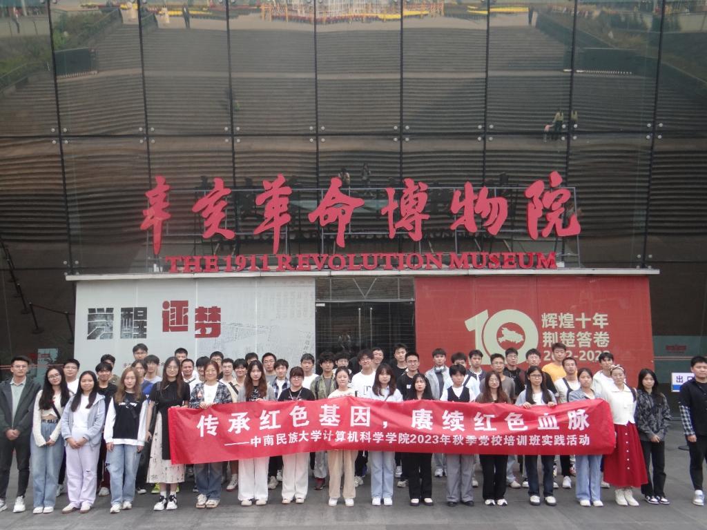 傳承紅色基因,賡續紅色血脈。為深入學習習近平新時代中國特色社會主義思想,全面貫徹黨的二十大精神,引導大學生堅定理想信念、加強黨性修養,10月26日,計算機科學學院2023年秋季黨校培訓班開展社會實踐活動,組織本期黨校144名入黨積極分子、106名發展對象和13名預備黨員前往辛亥革命博物館緬懷革命先烈,傳承革命精神,學院黨校聯絡人沈易軍、2022級輔導員祝夢歡、2021級輔導員朱浩軍帶隊參加。