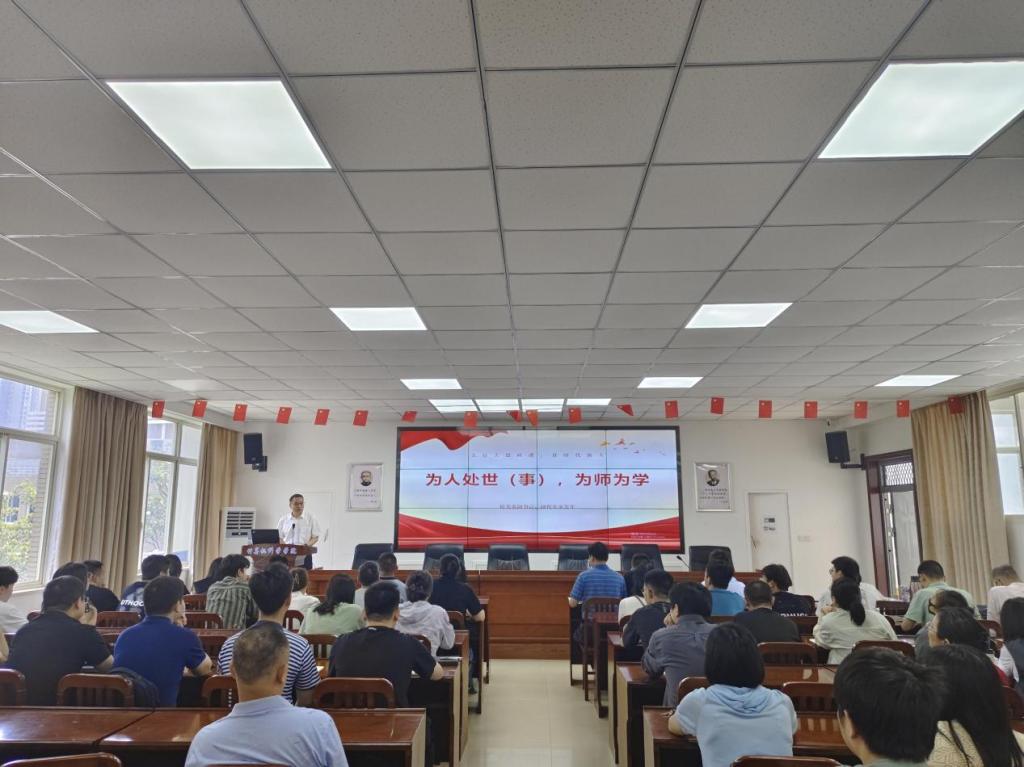 宋發軍結合自己多年來的工作體會、生活感悟和真實故事,生動闡述了為人、為師、為學的道理。他指出,做人要忠誠老實、工作要團結協作、處事要戒急用忍,生活要嚴謹、作風要正派、為人要正直。作為一名教育工作者,要努力做有理想信念、有道德情操、有扎實學識、有仁愛之心的“四有”好老師。他鼓勵廣大教職員工要樹立遠大理想,以高遠的歷史站位、寬廣的眼界視野和深邃的戰略眼光,成為教書育人的“大先生”。
