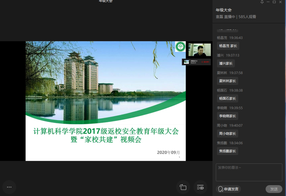 9月2日晚7點(diǎn),中南民族大學(xué)計(jì)算機(jī)科學(xué)學(xué)院2017級(jí)組織召開線上年級(jí)大會(huì)。2017級(jí)輔導(dǎo)員袁磊、2017級(jí)全體學(xué)生及家長(zhǎng)參加會(huì)議。本次會(huì)議由輔導(dǎo)員袁磊主持。