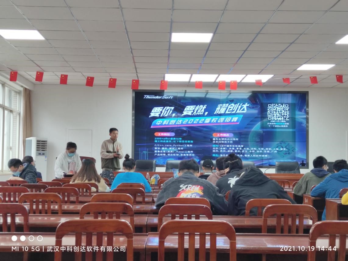 為了幫助計算機科學學院2022屆畢業生更好地了解招聘信息,找到自己心儀的企業。10月19日,計算機科學學院在9號教學樓211教室舉辦武漢中科創達軟件有限公司專場招聘會。