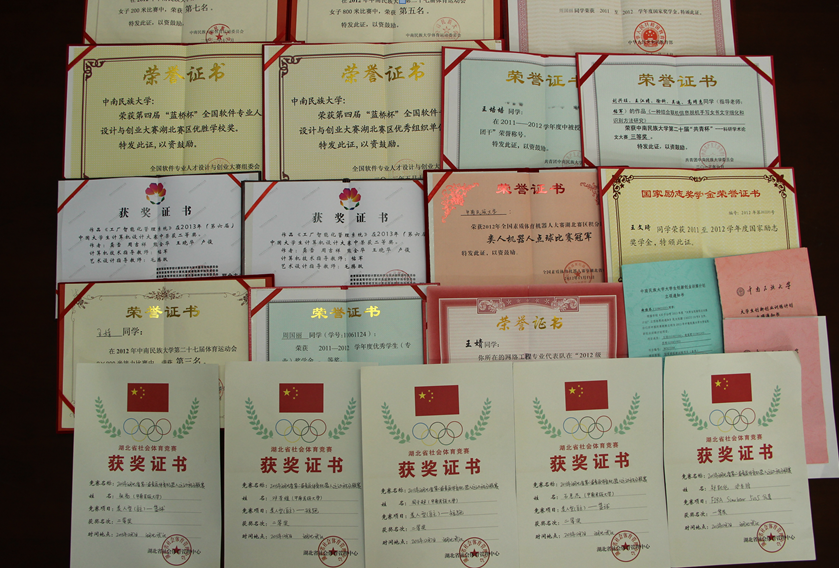 學生課外科技創新競賽證書(部分)