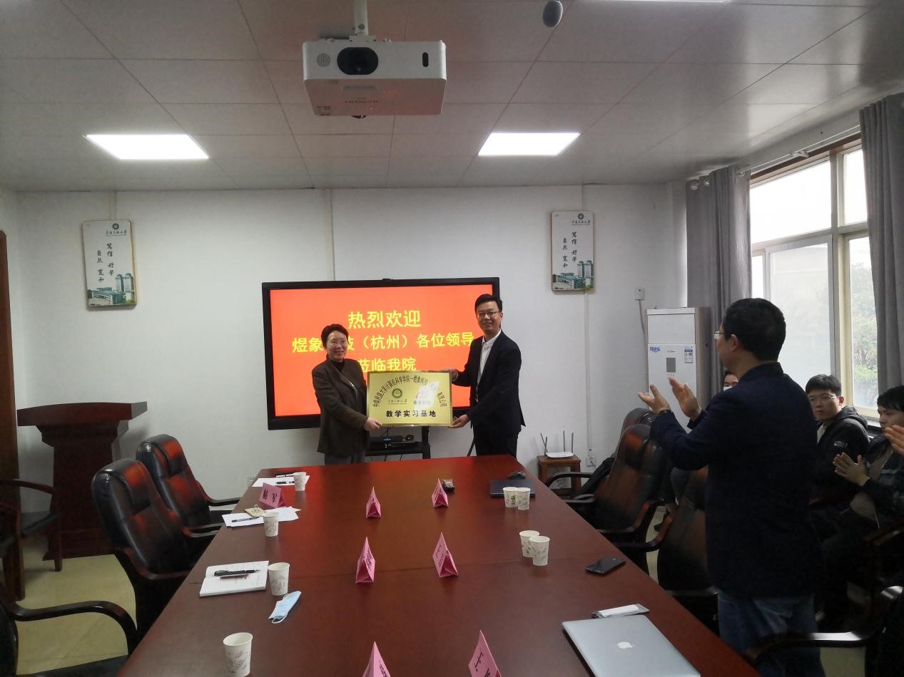 4月26日下午,煜象科技(杭州)有限公司領導一行3人蒞臨我院參觀訪問,并參加了我院與煜象科技(杭州)有限公司合作成立的聯合實驗室及教學實習基地的授牌儀式。