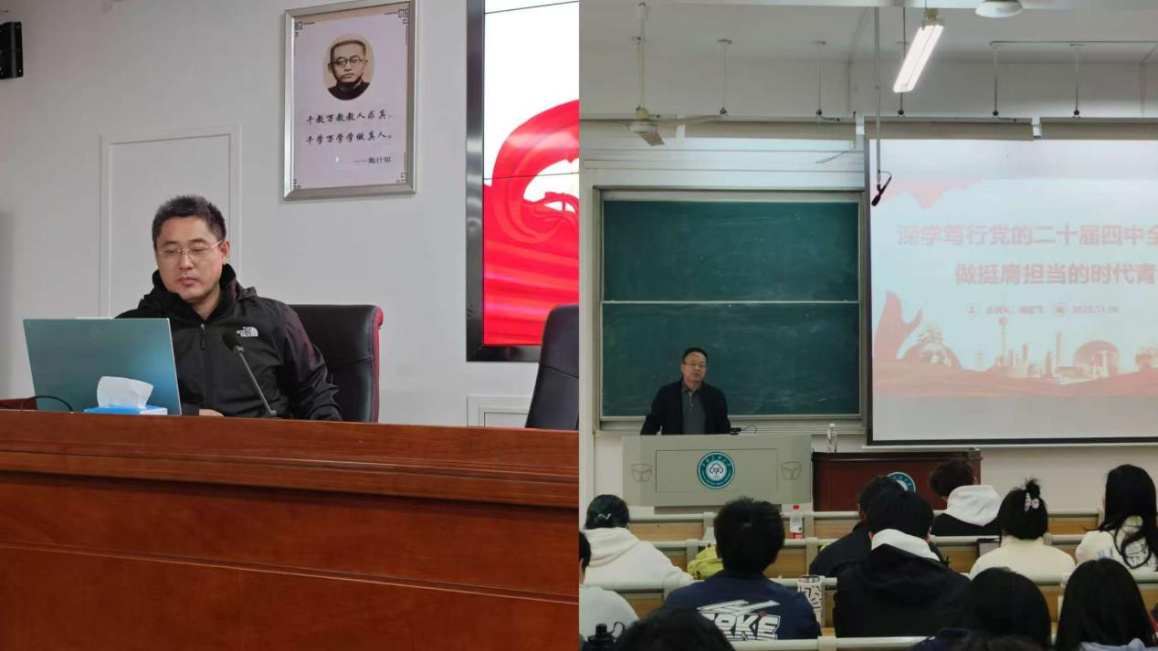 在發(fā)展對(duì)象與預(yù)備黨員培訓(xùn)班上,黨委學(xué)生工作部部長(zhǎng)楊濤以《深入學(xué)習(xí)貫徹黨的二十屆四中全會(huì)精神》為題,系統(tǒng)梳理了“十四五”時(shí)期我國(guó)發(fā)展取得的重大成就,集中解讀了“十五五”時(shí)期經(jīng)濟(jì)社會(huì)發(fā)展的指導(dǎo)思想、主要目標(biāo)、遵循原則和重要部署,他表示全體發(fā)展對(duì)象和預(yù)備黨員要充分發(fā)揮黨員先鋒模范作用,率先學(xué)習(xí)、深刻領(lǐng)悟、準(zhǔn)確把握全會(huì)提出的新思想新論斷新部署,切實(shí)增強(qiáng)“四個(gè)意識(shí)”、堅(jiān)定“四個(gè)自信”、做到“兩個(gè)維護(hù)”,自覺(jué)做黨的創(chuàng)新理論的堅(jiān)定信仰者和忠實(shí)實(shí)踐者。計(jì)算機(jī)學(xué)院(人工智能學(xué)院)黨委書(shū)記潘宏飛以《深學(xué)篤行黨的二十屆四中全會(huì)精神,做挺膺擔(dān)當(dāng)?shù)臅r(shí)代青年》為題,解讀了自黨的二十大以來(lái)黨中央和國(guó)家關(guān)于科技高水平自立自強(qiáng)的戰(zhàn)略布局,并結(jié)合國(guó)內(nèi)外經(jīng)濟(jì)發(fā)展形勢(shì),講解了國(guó)家“十五五”時(shí)期經(jīng)濟(jì)社會(huì)發(fā)展的新要求。他指出,當(dāng)代青年正處在國(guó)家發(fā)展的關(guān)鍵時(shí)期,既是新時(shí)代的見(jiàn)證者,更是建設(shè)者,當(dāng)自覺(jué)肩負(fù)起歷史和時(shí)代賦予的重任。同時(shí),他結(jié)合個(gè)人求學(xué)工作經(jīng)歷,從發(fā)展新質(zhì)生產(chǎn)力的時(shí)代要求和學(xué)校“雙一流”建設(shè)的奮斗目標(biāo)出發(fā),立足計(jì)算機(jī)學(xué)科背景,向全體學(xué)員提出了五點(diǎn)希望:一是筑牢信仰之基,做政治過(guò)硬的“明白人”,明確何為“國(guó)之大者”,把個(gè)人理想融入國(guó)家發(fā)展大局;二是練就卓越之能,做技術(shù)精湛的“實(shí)力派”,積極參與社會(huì)實(shí)踐與項(xiàng)目歷練,提升專業(yè)本領(lǐng);三是是勇闖創(chuàng)新之關(guān),做突破瓶頸的“破壁者”,勇于挑戰(zhàn)技術(shù)“無(wú)人區(qū)”;四是深植應(yīng)用之根,做賦能百業(yè)的“實(shí)干家”,樹(shù)立“問(wèn)題導(dǎo)向”的思維;五是恪守向善之責(zé),做科技倫理的“守護(hù)者”,堅(jiān)守人文關(guān)懷與倫理底線。