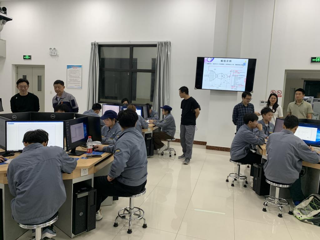 班導(dǎo)師參觀數(shù)控車削實(shí)訓(xùn)區(qū) 蘇志俊攝