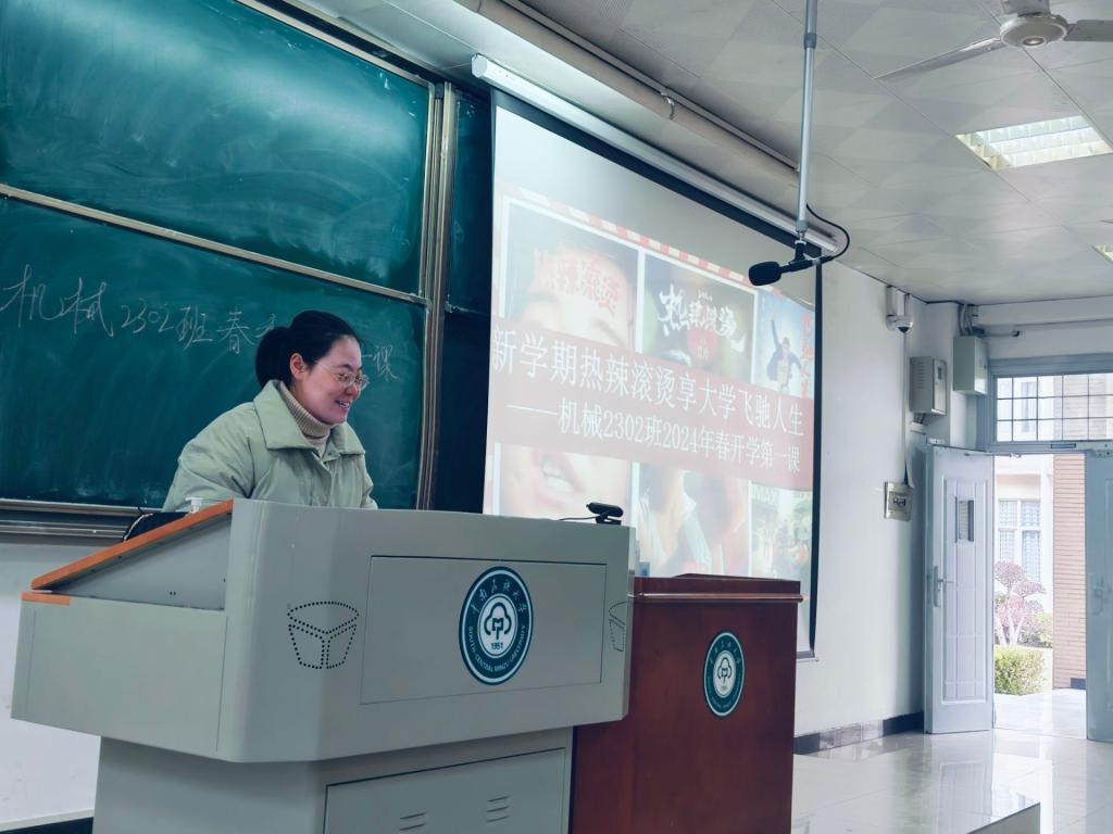 {機械2302班班導師姚欣雨倡議同學們“新學期熱辣滾燙,享大學飛馳人生” 王凱楓攝}