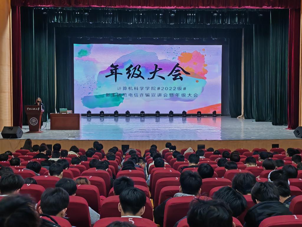 會上,輔導員祝夢歡總結了22級各班上學期的學習情況,對各科期末考試成績及掛科情況進行了詳細的分析和解讀。她指出,大一是奠定學業成績的關鍵階段,良好的學習成績基礎對未來的大學生活至關重要,在面對相對困難的課程時更不能輕言懈怠。她鼓勵同學們要尋找志同道合的學習伙伴,主動請教專業老師和優秀學長姐,爭做卓越出色的計科學子。并根據各科考試情況,為同學們梳理了獲得畢業證和學位證的條件、各類型課程學分的修讀情況、學業預警同學晚自習安排等。此外,大會特地強調,同學們要熟讀《學生手冊》,守好規矩意識,提高防電詐意識,保護好自身生命和財產安全,培養自主解決問題的能力。