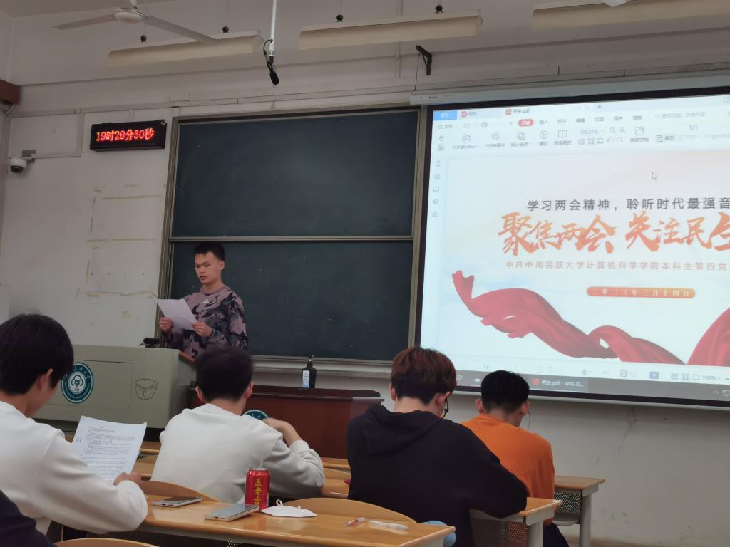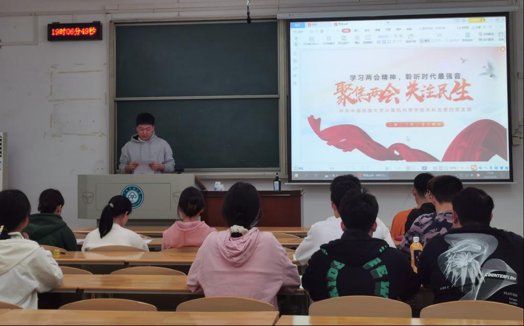 為增強學生的愛國主義情懷,培養其關心國家大事的責任意識,計算機科學學院本科生第四黨支部開展了學習兩會精神專題活動。