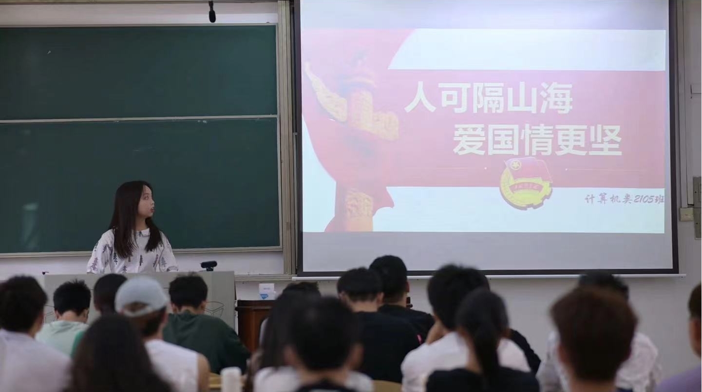 “愛國”主題班團會召開時間恰逢國慶前夕,各班同學(xué)通過班團會相互學(xué)習(xí)交流,共同表達(dá)對祖國的真摯祝福。各班班導(dǎo)師也參與其中,為學(xué)生提供思想引領(lǐng)。計算機類2104班以黨的二十大精神、共青團成立100周年兩個方面為主,以主講人介紹、邀請共青團員代表發(fā)言、班級同學(xué)發(fā)表對祖國祝愿三種方式讓班級同學(xué)切身參與其中,深切感受愛國教育的魅力。計算機類2105班結(jié)合當(dāng)下時代背景,通過觀看鐘南山院士、醫(yī)護人員、志愿者等抗疫一線人員的故事,同學(xué)們感受到了疫情期間全國人民眾志成城、守望相助的精神。自動化2103班通過講述中國共產(chǎn)黨的發(fā)展歷史,觀看《覺醒年代》相關(guān)視頻,再次激發(fā)學(xué)生的愛國熱情。