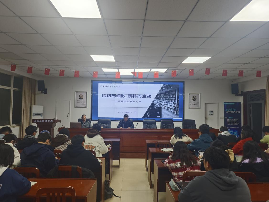黃宗貴教授的講座融合中外實例,旁征博引,引經據典,案例分析透徹,語言風趣幽默。他表示,文章應是有感而發,并圍繞消息寫作四個層面提出八個“要”,即政治站位要高、搜集材料要細;敘述描寫要具體、新聞語言要鮮活;標題制作要實、句式打磨要嚴;導語角度要新、核心亮點要明。他希望同學們要常懷好學之心,廣泛培養多元化的興趣與愛好,努力成為精通多領域的領跑者。
