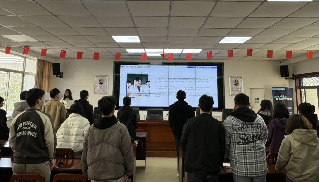 班會上,首先是班導師們闡述了誠信對于個人成長、學術研究乃至社會發展的重要意義,強調了誠信考試不僅是對知識的尊重,更是對自己和他人負責的體現。此外,還有班級利用多媒體手段展示了近年來學院在誠信教育方面取得的成果,以及違規作弊帶來的嚴重后果,以案為鑒,警鐘長鳴。