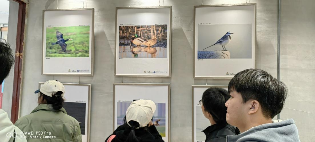 初冬時(shí)節(jié),暖陽普照。在前往天興洲的車上,同學(xué)們唱起了紅歌。到達(dá)天興洲黑鸛保護(hù)宣傳中心后,協(xié)會(huì)王海芳老師帶領(lǐng)大家參觀“黑鸛和他的朋友們”主題攝影展,讓我們了解到天興洲上的各類“鳥類居民”,原來這里除了有國家一級(jí)重點(diǎn)保護(hù)鳥類黑鸛,還生活著游隼、灰鶴、白額燕鷗等200多種鳥類,它們每年都會(huì)在此越冬、繁衍、棲息。