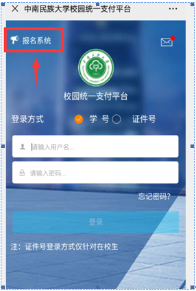 2.點擊主頁面左上角“報名系統”,如圖:
