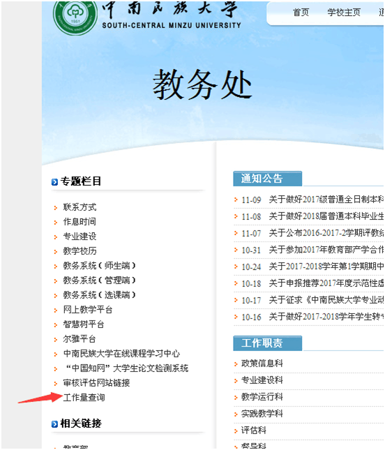 2、個人工作量查詢,請登錄教務處主頁,點擊“工作量查詢”http://210.42.144.70/pjcx/login.aspx;