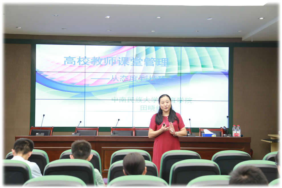 田曉紅教授 從為什么要進行課堂管理以及如何進行課堂管理兩個方面對“高校教師課堂管理策略:從態度到技巧”進行了論述,她認為作為教師,要正確處理好態度與技巧、策略與藝術之間的關系,生師互動,創造良好的課堂環境,不斷提高課堂教學效能。同時,田教授指出,課堂管理是一種文化傳承,做好課堂管理工作能有效促進學生的課堂參與,能幫助學生實現自我管理。