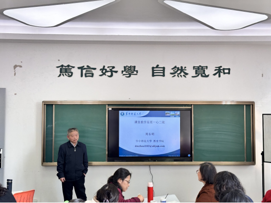 周教授從責(zé)任心、把握教材能力和教學(xué)設(shè)計能力三個維度,系統(tǒng)分享了其在教學(xué)領(lǐng)域多年的經(jīng)驗和見解。他結(jié)合課堂教學(xué)實際,詳細(xì)闡述了如何通過強化教師的責(zé)任心來改善課堂管理,以及如何通過提升教師的把握教材能力和教學(xué)設(shè)計能力來提高教學(xué)質(zhì)量。周教授強調(diào),教師應(yīng)將“以學(xué)生為中心”的教學(xué)理念轉(zhuǎn)化為具體的教學(xué)實踐,以實現(xiàn)教學(xué)內(nèi)容和方法的創(chuàng)新。他還鼓勵教師在教學(xué)設(shè)計中融入課程思政元素,做到潤物無聲地引導(dǎo)學(xué)生樹立正確的價值觀和人生觀。