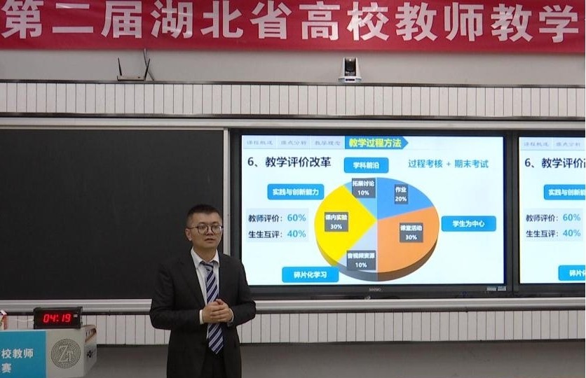 5月14-15日,第二屆湖北省高校教師教學(xué)創(chuàng)新大賽(現(xiàn)場賽)在華中師范大學(xué)舉辦。我校遴選推薦的2位教師均獲得優(yōu)異成績,法學(xué)院楊帆老師榮獲副高組特等獎,計科學(xué)院艾勇老師榮獲中級及以下組一等獎,學(xué)校獲優(yōu)秀組織獎。