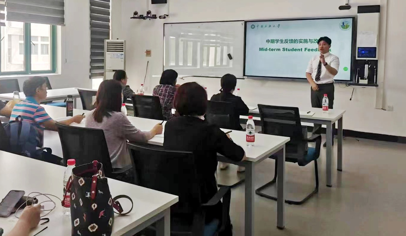 教師教學發展中心教學咨詢部負責人王昊哲首先介紹了中南民族大學教學咨詢工作的開展情況。隨后以中期學生反饋教學咨詢項目為重點,介紹了該項目在我校的具體實施情況。他指出,中期學生反饋的要點在于觀察課堂教學、收集反饋意見和加工處理信息三個環節,并強調要根據校情學情及時調整方案,以達到最理想的實施效果。最后和與會教師開展了充分交流和研討。