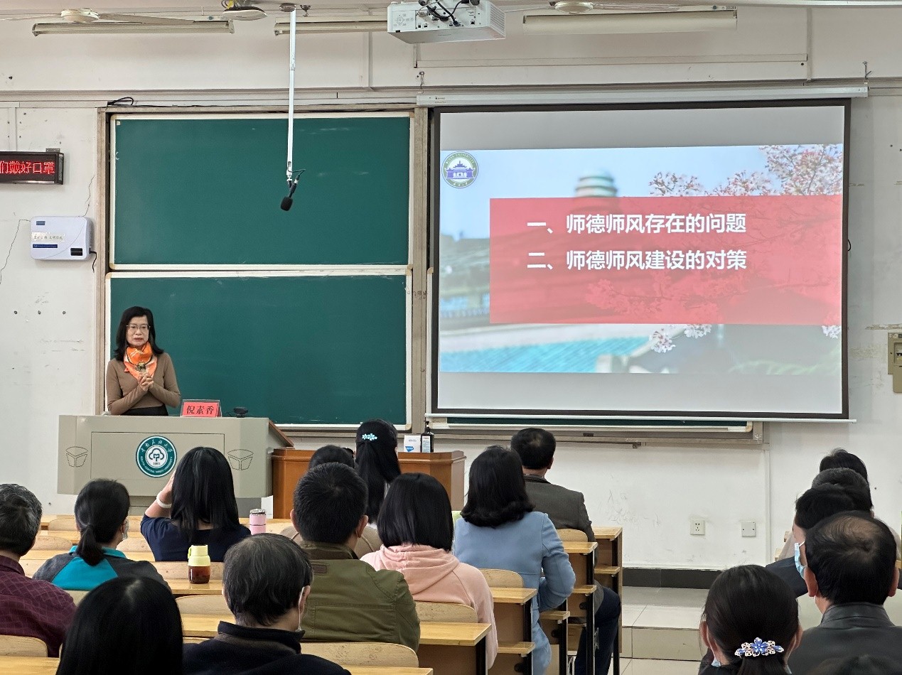 研討會(huì)上,四位教授分別以“論大學(xué)教師素養(yǎng)的提升”、“金課是怎樣煉成的”、“高校教師師德師風(fēng)存在的問題與對(duì)策”及“大學(xué)教師的師德建設(shè)”為題,圍繞教師綜合素養(yǎng)的提升、課堂教學(xué)與學(xué)術(shù)研究的深度融合、高校教師師德師風(fēng)失范問題剖析、師德的管理與建設(shè)等內(nèi)容進(jìn)行分享,教師們就相關(guān)問題與專家進(jìn)行了熱烈交流。