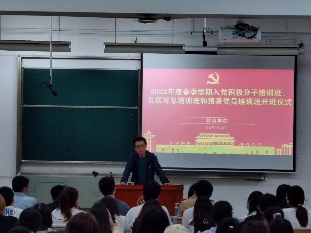 為加強學生黨員思想政治教育,增強理論素養(yǎng),提高政治覺悟。4月22日晚,教育學院于15棟221舉辦了春季學期黨課培訓班開班儀式。院黨委書記周剛、黨委副書記孫冰出席了本次大會。