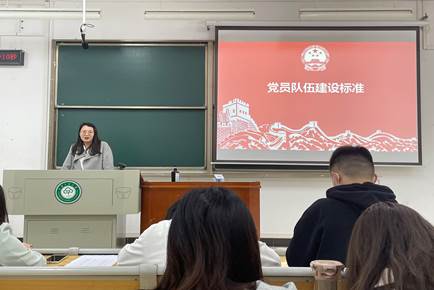 譚閨臣老師首先從學院入黨名額、入黨結構、評選標準等方面向大家詳細介紹了入黨工作中的中心原則。她以黨員發展的必備條件和入黨程序為切入點,從端正入黨動機、積極創造條件、爭取早日成為合格黨員等方面論述,要求入黨積極分子嚴格遵守黨的章程,履行黨的宗旨,身體力行,接受黨組織的考驗。她還要求新生黨員牢記黨員身份,在日常學習、生活和社會實踐中發揮模范帶頭作用,時刻保持黨員先進性。