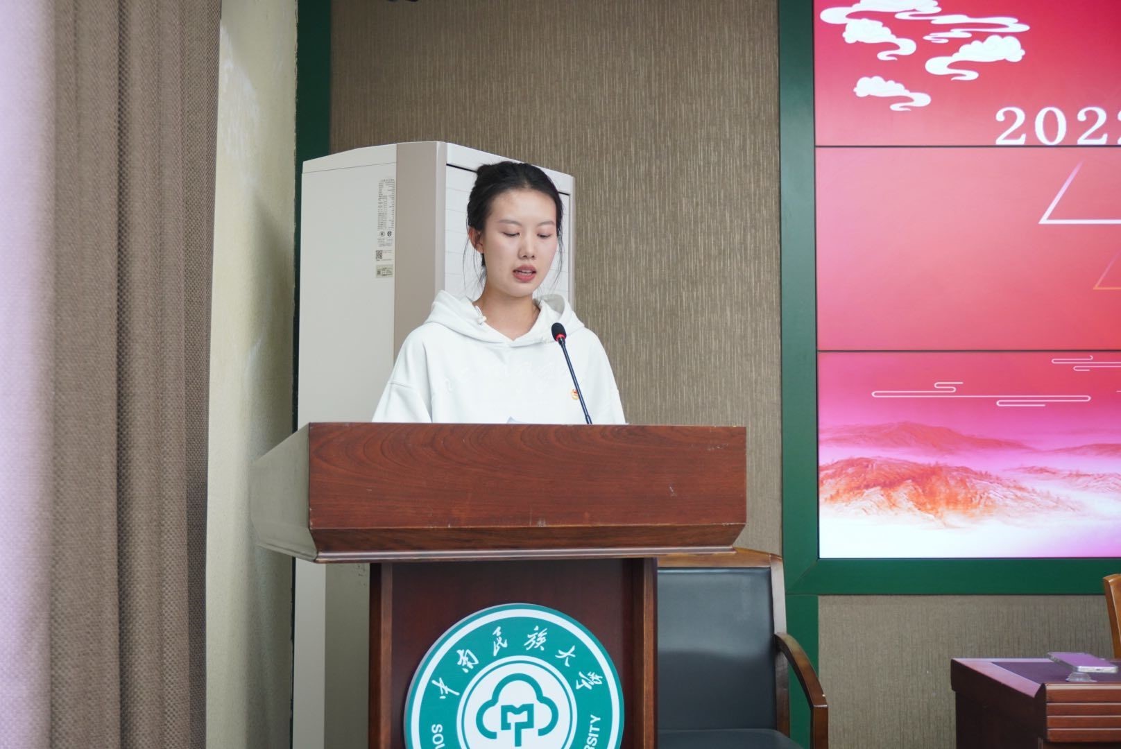 應(yīng)用心理學(xué)的王子涵同學(xué)作為開班儀式代表發(fā)言,她向參加本次團(tuán)校培訓(xùn)的同學(xué)們提出幾點(diǎn)倡導(dǎo):一、明確責(zé)任,增強(qiáng)新時(shí)代青年的歷史使命;二、找準(zhǔn)定位,增強(qiáng)學(xué)習(xí)積極性和自覺性;三、勤奮學(xué)習(xí),提高團(tuán)干部綜合能力素質(zhì)。
